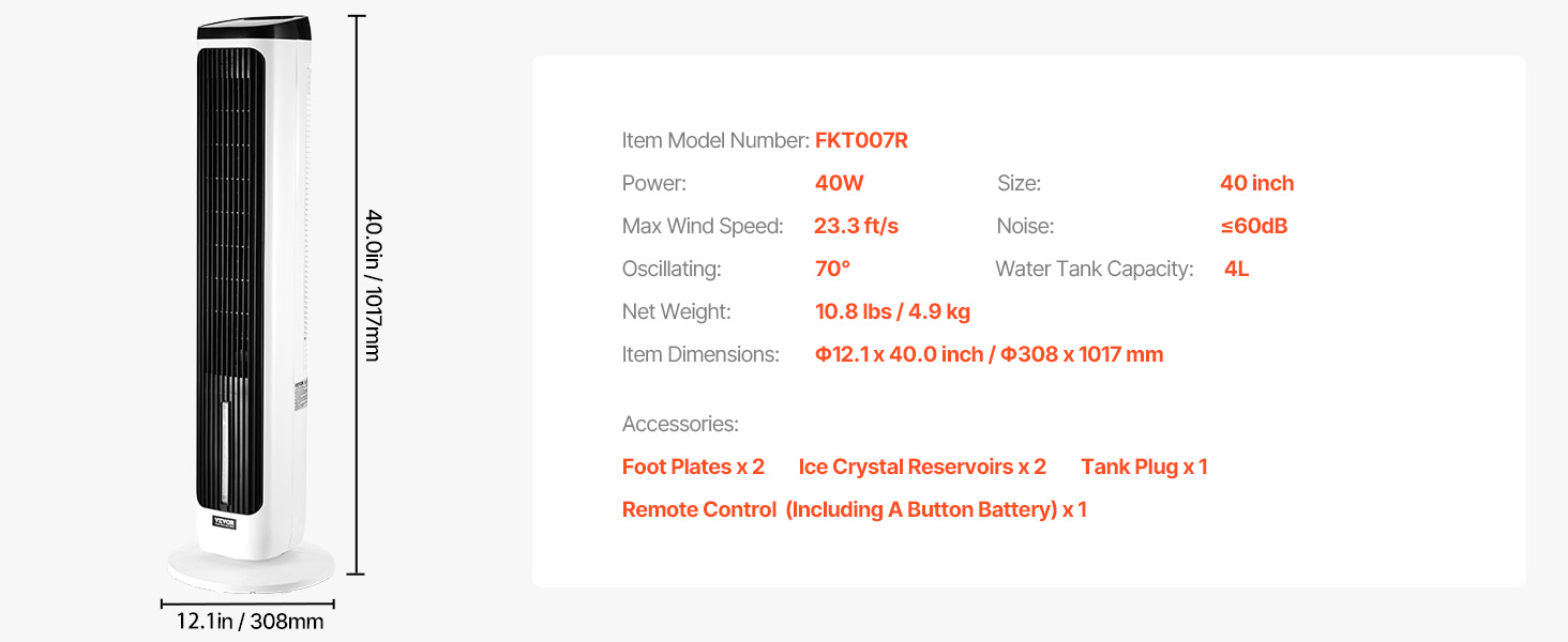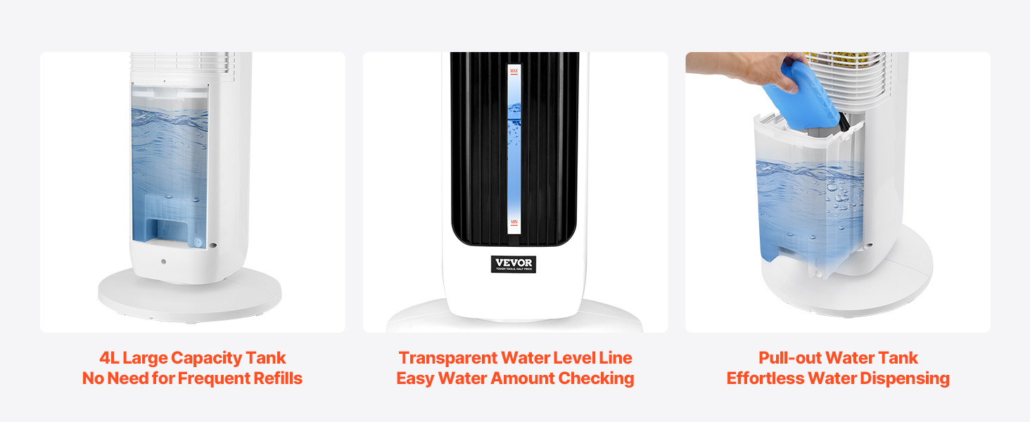 - Large Capacity Humidification: This standing fan comes with a 4L large-capacity water tank, meeting long-hour usage needs. It also supports ice crystal holders to accelerate cooling, ensuring lasting coolness throughout the summer
