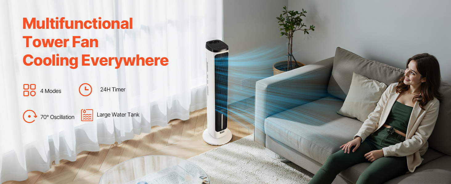 Need a fan for a refreshing, comfortable summer? This tower fan is your first choice! With high airflow, multiple functions, and adjustable speeds, it delivers a cooler sensation, keeping your home refreshing even on scorching days.